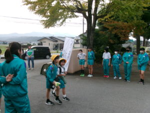 スタートを切るのは、6年生。気持ちのよい、元気いっぱいな挨拶が、空気の澄んだ秋空に温かく響きました。
