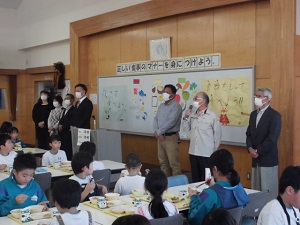 協議会の前には大休憩や3限の参観、協議会後には給食を子供たちと共に味わっていただきました。会話の中で、温かい言葉や励ましの言葉をかけていただき、心が元気に明るくなった子供たちもいたようです。