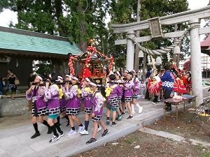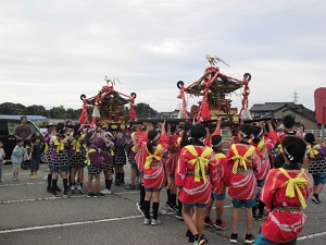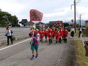 その後、たくさんの保護者や地域の方々に見守られながら、荻生保育所まで神輿をかつぎました。通りには、「わっしょい、わっしょい」の元気な声が響きました。