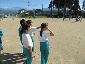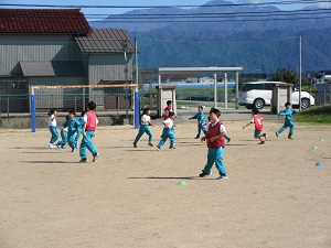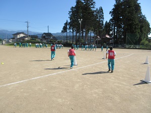 グラウンドでは、4~6年生の部と1~3年生の部に分かれて「ケイドロ」をしました。追いかける人も逃げる人も、それを応援する人も一生懸命で、笑顔と温かい声援が広がりました。