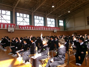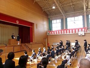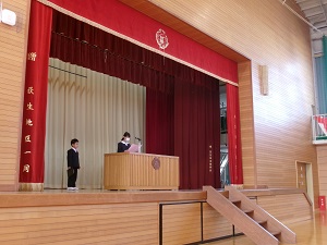 離任式では、大変お世話になった先生方とお別れをしました。感謝の気持ちを込めた大きな拍手が体育館中に響き渡りました。