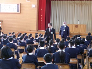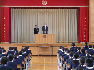 校長先生からは、「や(やさしく)・か(かしこく)・た(たくましく)の心が大きく美しく輝いていてうれしく思います」「春休みには、この1年間をふり返り、自分はどうだったか見つめてみましょう。また、新しい学年に向けて、自分はどうしたらよいか考えてみましょう。エネルギーを蓄えて新しい学年へと進みましょう」とお話がありました。