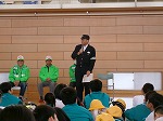 青色防犯パトロール隊の方々、若栗駐在所の駐在さんをお迎えして出発式を行いました。隊員の方々から、交差点は特に気をつけること、知らない人について行かないことなどのお話がありました。子供たちは、隊員さんに「さようなら」と手を振って挨拶をして集団下校をしました。今年度もどうぞよろしくお願いします。
